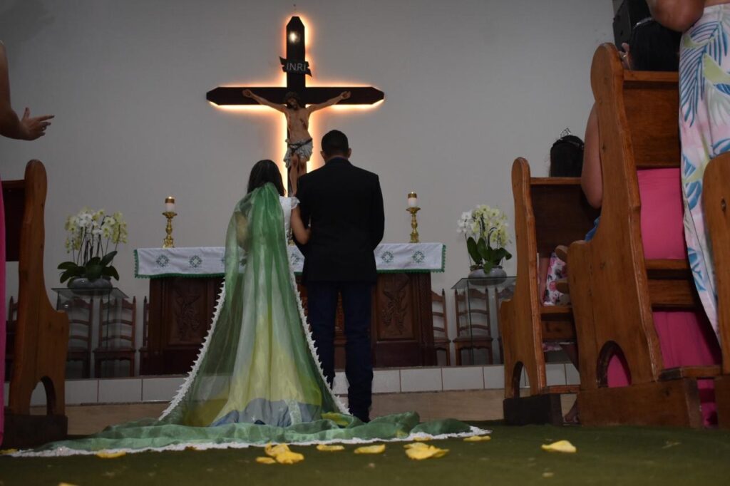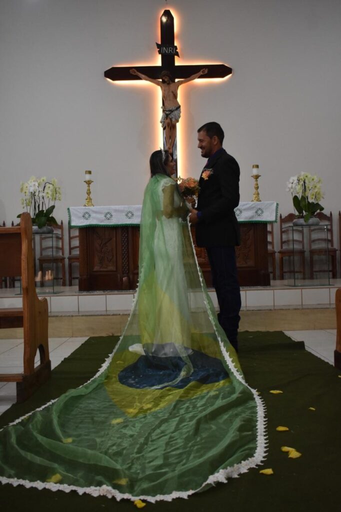 Casei em Tangará, ainda de tornozeleira. O vestido tinha uma fenda para ela aparecer. Eu nunca escondi. Usei um véu feito com a imagem da Bandeira do Brasil impressa. Muita gente não foi ao casamento por medo. Alguns ficaram na porta da igreja e não entraram. Porém, eu tenho consciência de que fiz o certo. Sempre fiz.
